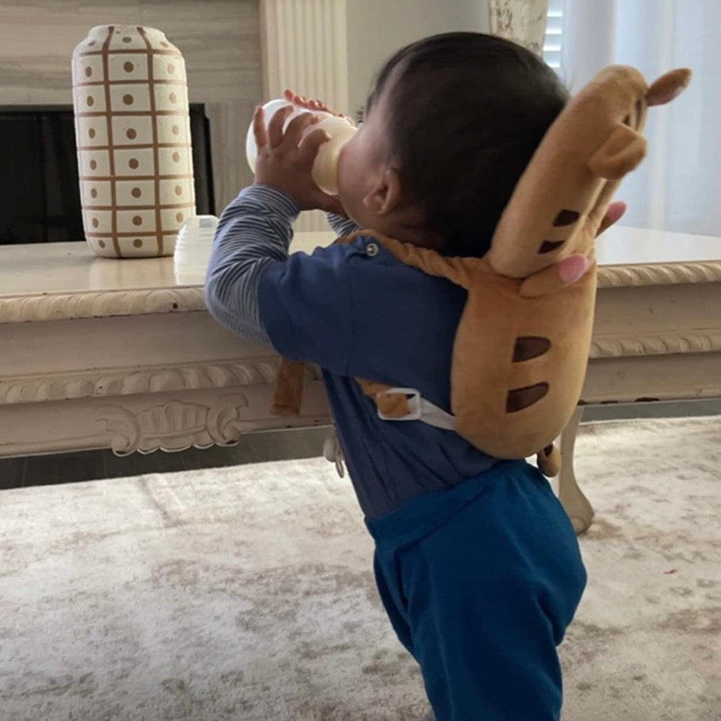 The Charmy backpack fits snuggly and comfortably. Preventing head injuries while giving your baby the freedom to move, discover, and take their first steps safely.